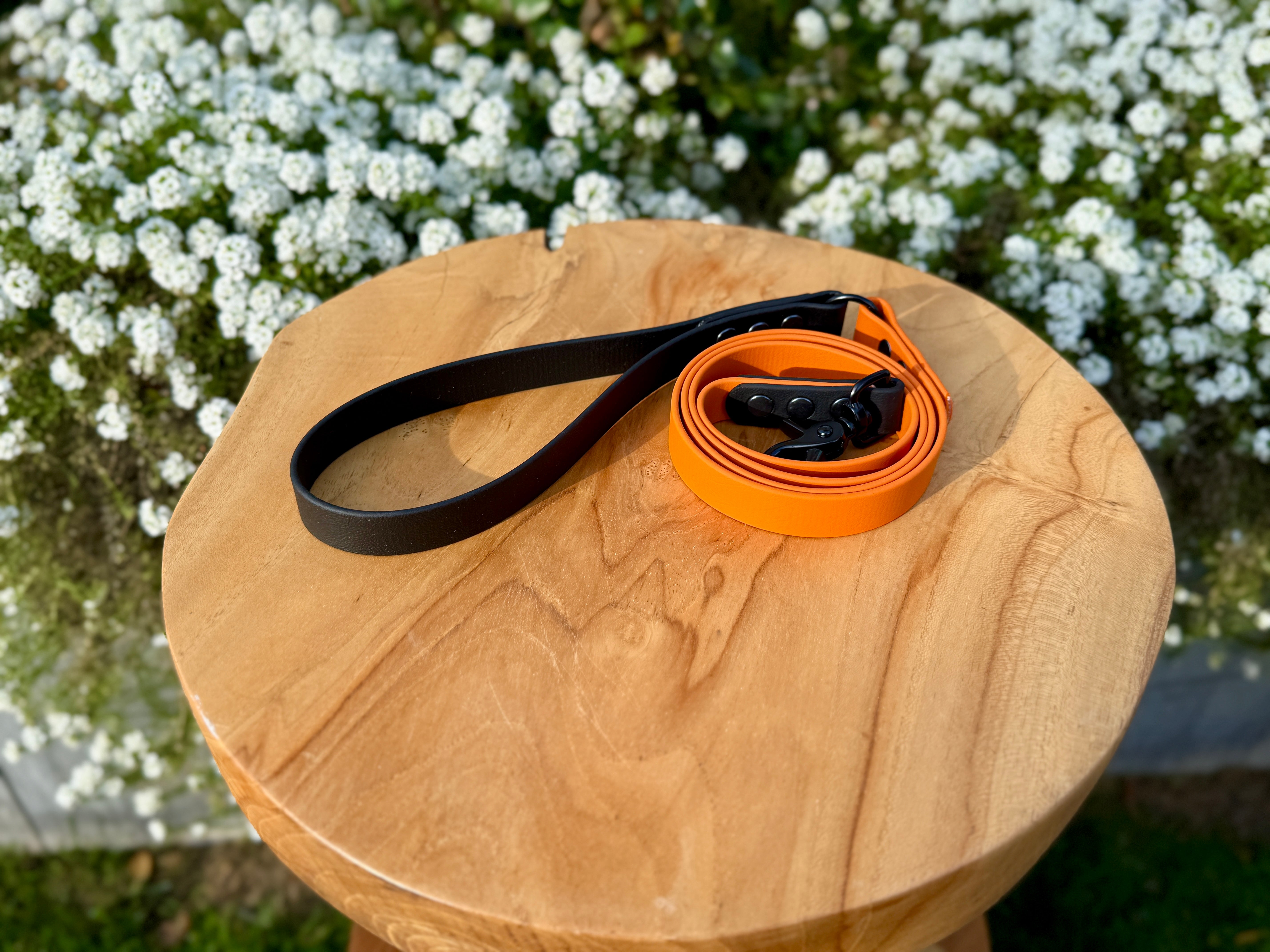 Crafted from either 16mm or 19mm high-quality Biothane, this dog lead is built for durability and everyday use. The material is completely waterproof, odour-resistant, and easy to clean. Designed for both strength and style, it features a secure black metal clasp and rust-resistant hardware for reliable performance in all weather conditions.