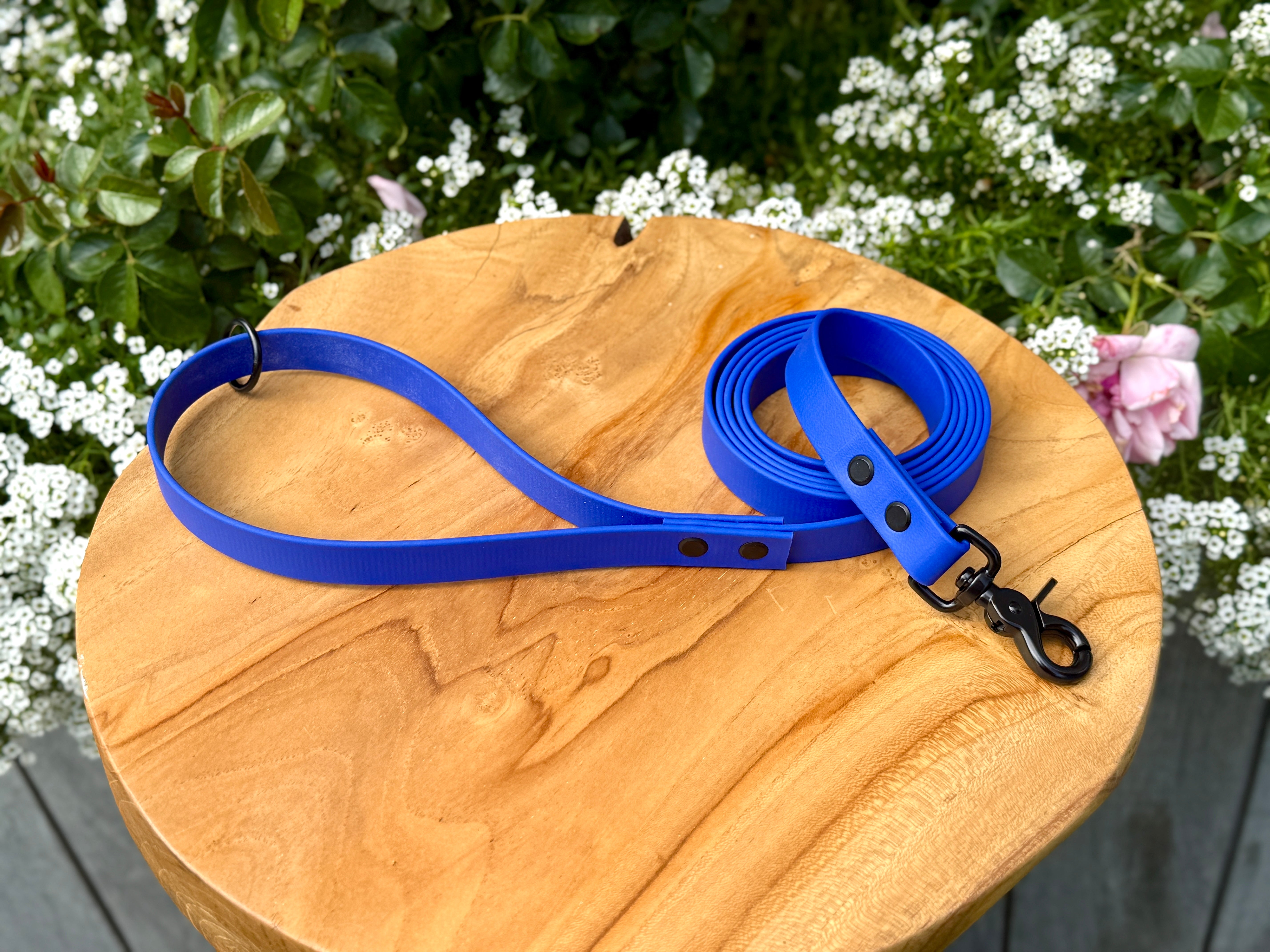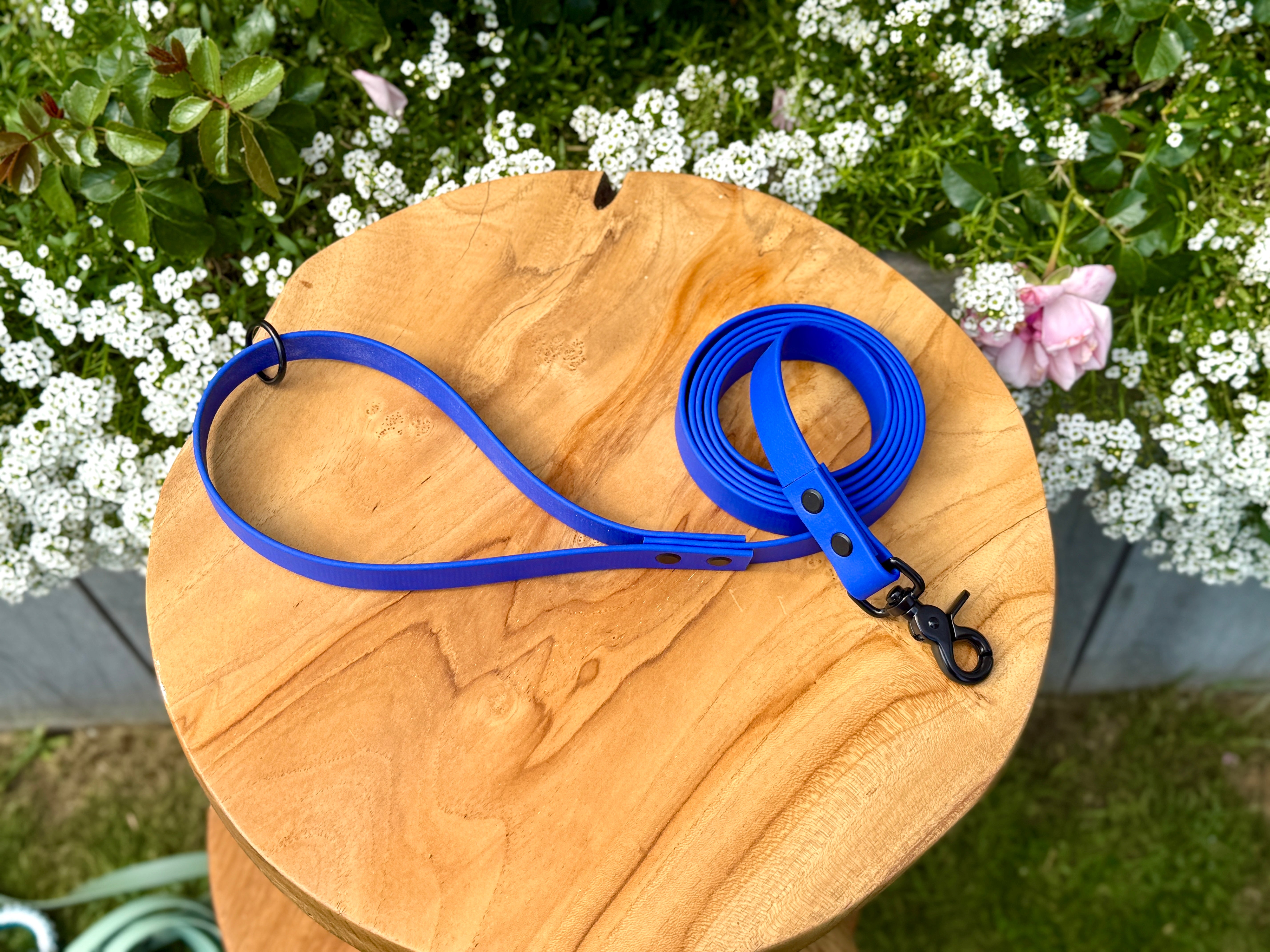 Crafted from either 16mm or 19mm high-quality Biothane, this dog lead is built for durability and everyday use. The material is completely waterproof, odour-resistant, and easy to clean. Designed for both strength and style, it features a secure metal clasp and rust-resistant hardware for reliable performance in all weather conditions.